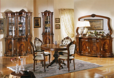 Коллекция классической итальянской мебели создаст теплый уют Вашего дома. Мебель выполнена частично из массива, а частично из шпонированного МДФ с использованием техники интарсио.