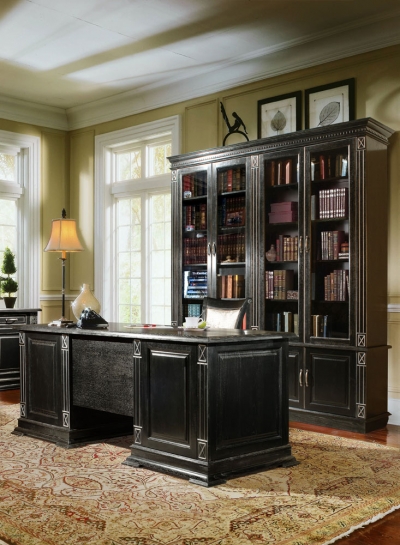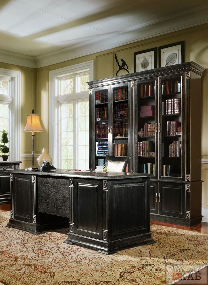 Стол письменный 7 «Верди Люкс» массив дуба, черный с серебряной патиной